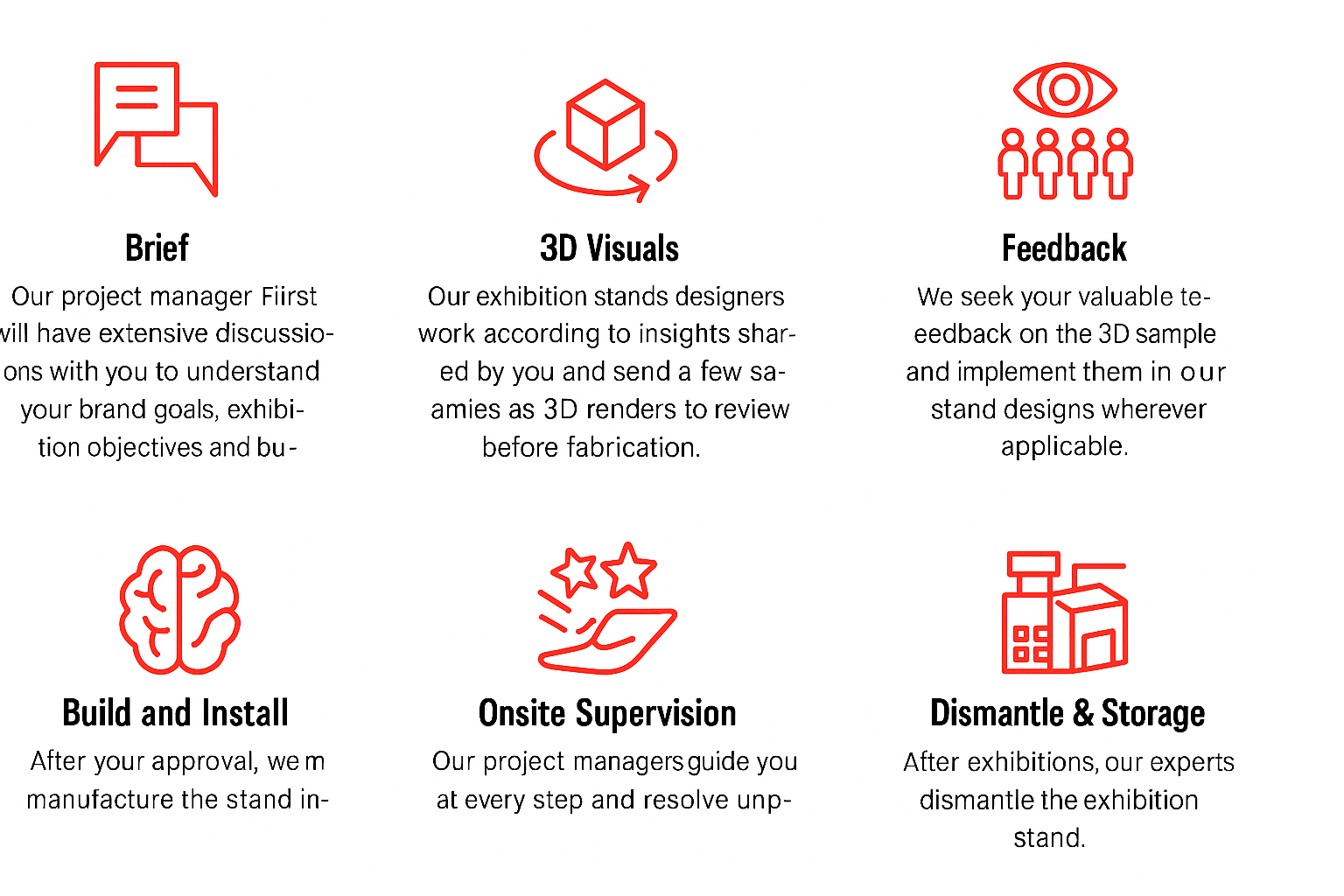 Our experienced team has successfully completed hundreds of projects, helping brands make a powerful impression at leading international fairs.